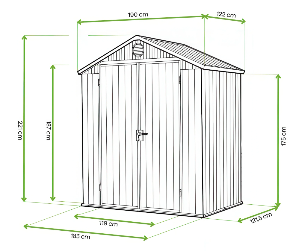 Dārza šķūnis DARWIN 6×4 Zaļš 190x121cm – Keter