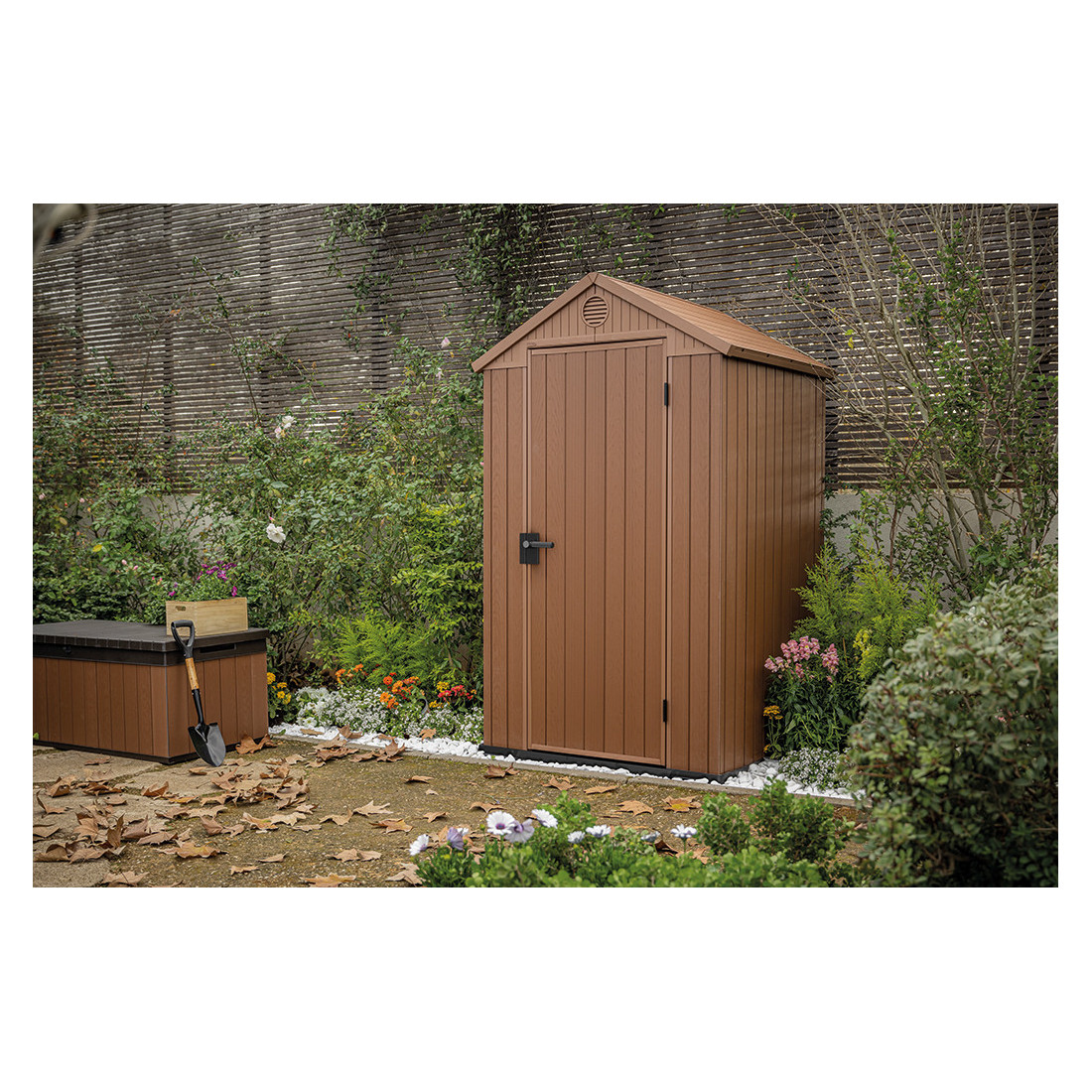 Iesakām rotaļu mājiņu pastāvīgi piestiprināt pie zemes. Grīdā ir paredzēti montāžas caurumi; skrūves nav iekļautas.